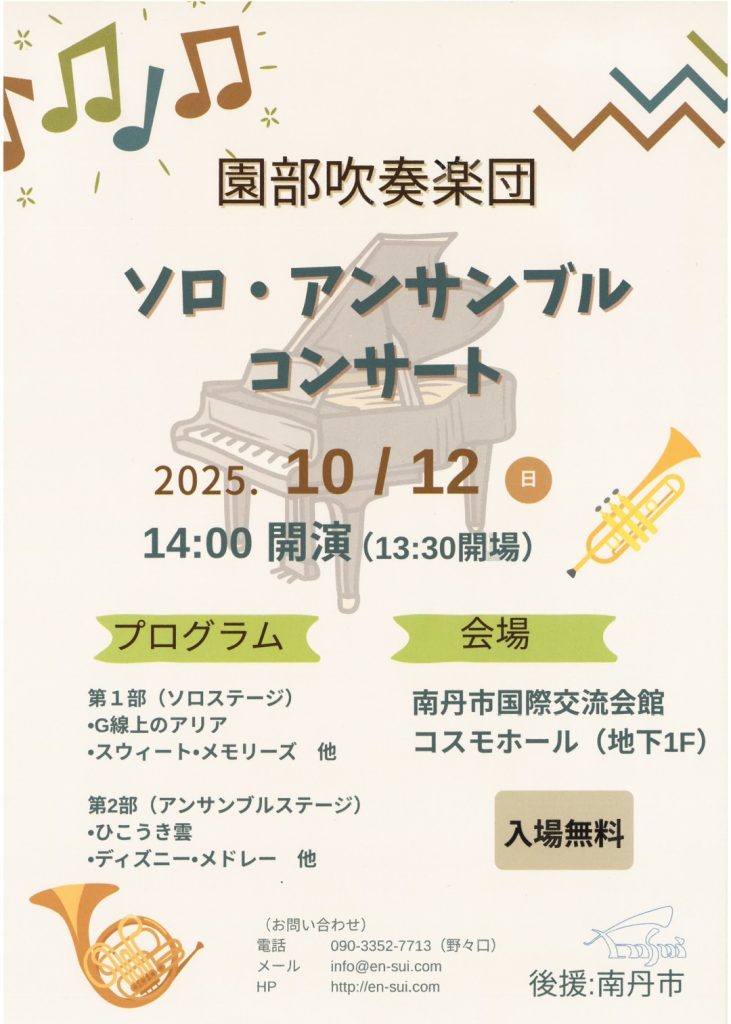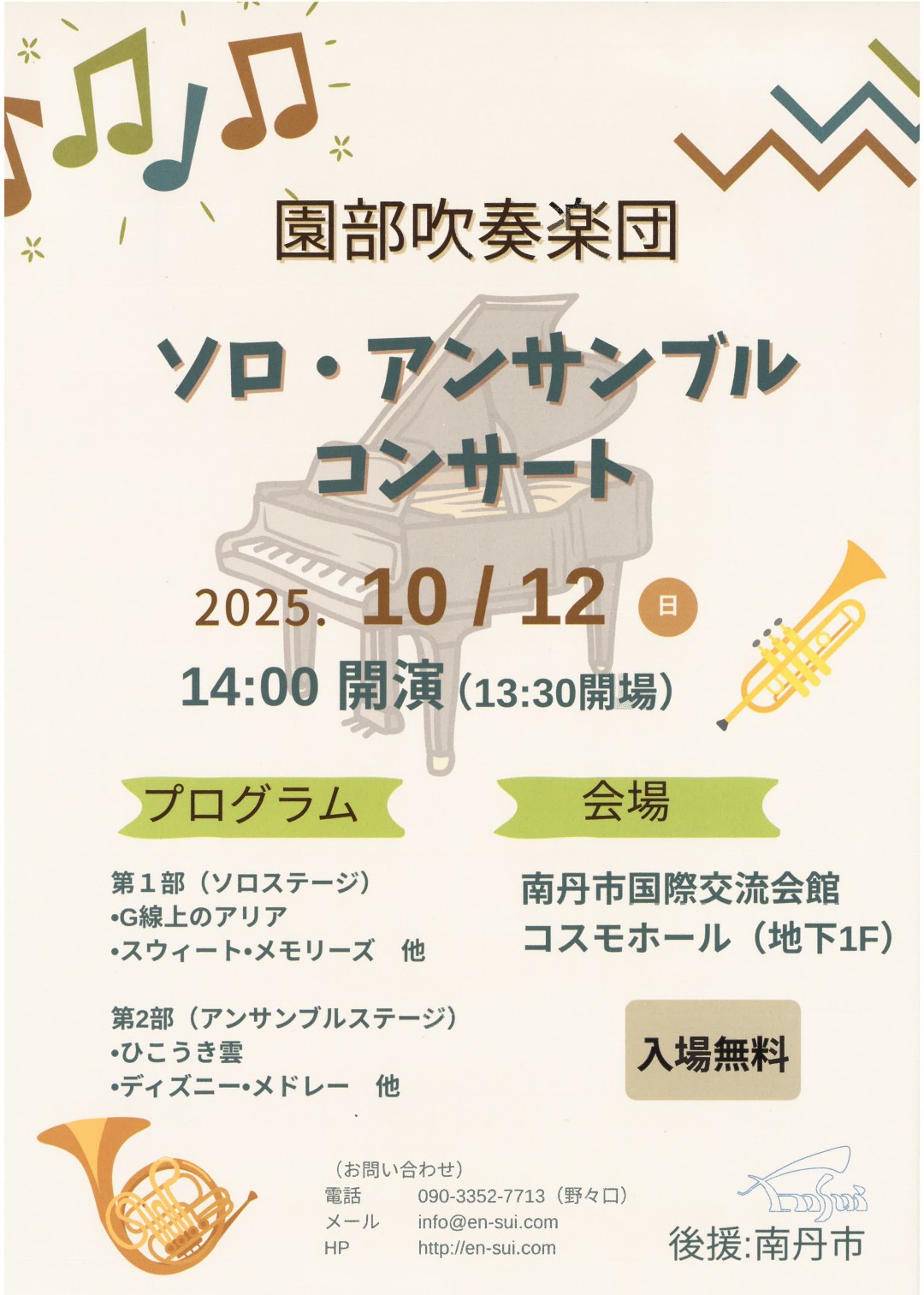 今週末、10月12日(日)は、ソロ・アンサンブルコンサート2025